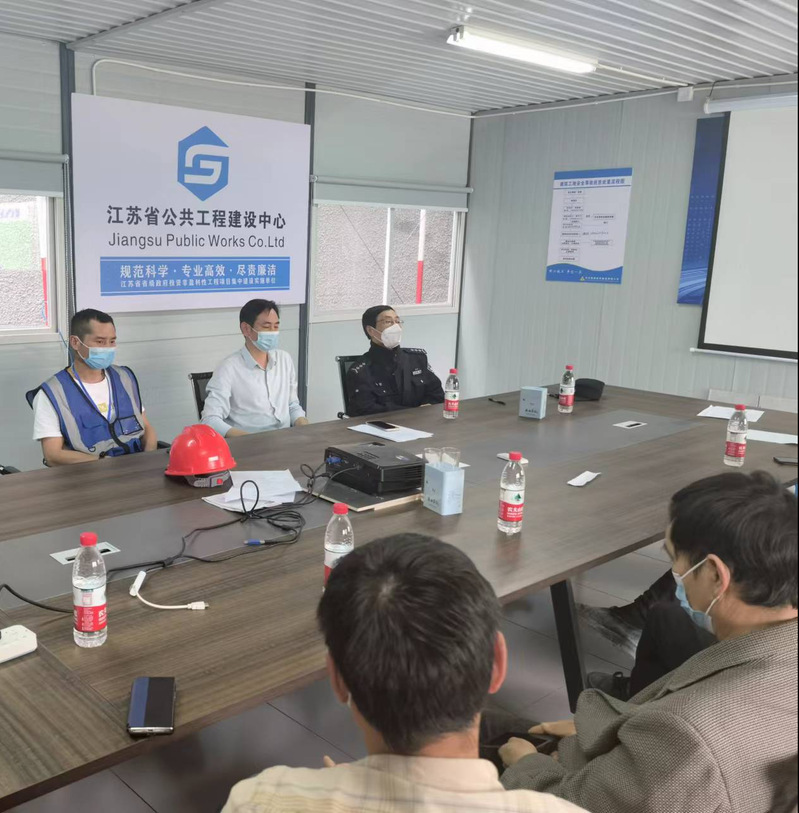 为缓解工人不良情绪,维护好项目部施工现场的安全稳定,2022年4月20日特邀请葑门派出所民警万强到现场对项目部管理人员及各班组组长做疫情防控及自身安全的专题讲座,主要内容包括疫情期间工人情绪控制方法和疫情防控安全措施等。